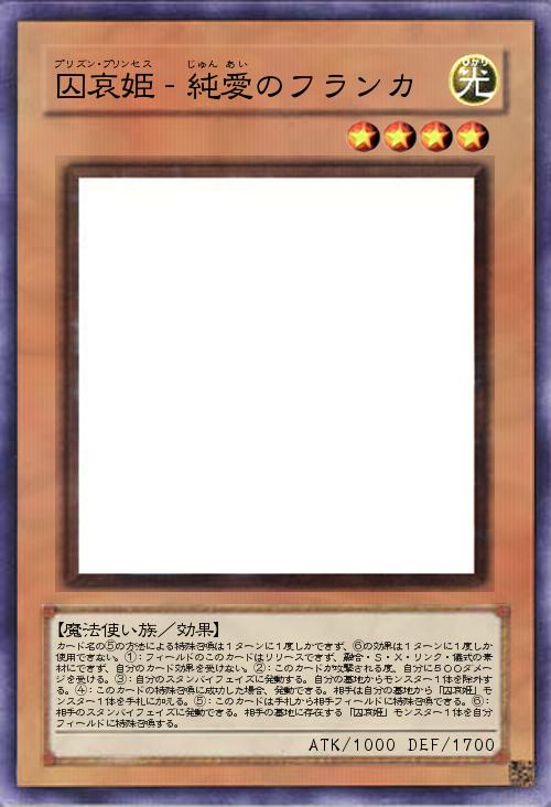 | カード名の⑤の方法による特殊召喚は1ターンに1度しかできず、⑥の効果は1ターンに1度しか使用できない。①:フィールドのこのカードはリリースできず、融合・S・X・リンク・儀式の素材にできず、自分のカード効果を受けない。②:このカードが攻撃される度、自分に500ダメージを受ける。③:自分のスタンバイフェイズに発動する。自分の墓地からモンスター1体を除外する。④:このカードの特殊召喚に成功した場合、発動できる。相手は自分の墓地から「囚哀姫」モンスター1体を手札に加える。⑤:このカードは手札から相手フィールドに特殊召喚できる。⑥:相手のスタンバイフェイズに発動できる。相手の墓地に存在する「囚哀姫」モンスター1体を自分フィールドに特殊召喚する。 | |||