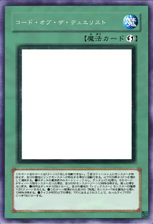 | このカード名のカードは1ターンに1枚しか発動できない。①自分フィールド上にモンスターが存在せず、自分の墓地にリンクモンスターが存在する場合に発動できる。以下の効果から1つを選択して適用する。●EXデッキの裏側表示のカードシャッフルし、ランダムに1枚選ぶ。そのカードがサイバース族モンスターだった場合、自分のEXモンスターゾーンに特殊召喚する。違った場合元に戻す。●相手はデッキから2枚ドローし、自分の墓地の「トリックスター」モンスターの種類×200ダメージを与える。●このターン破壊された自分の「剛鬼」モンスター1体を墓地から選んで特殊召喚する。●ライフが4000以下の場合、100になるよう払うことで、払ったライフ1000につき1枚ドローする。 | |||