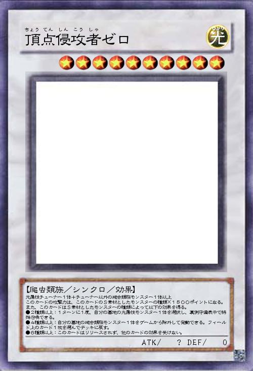 「ワーム・ゼロのリメイクをしようと思い、カード名をずらすために日本語にしようと思ったんですが、「ワーム」をコンピュータ用語解釈で訳すと「侵略者」になってヴェルズと被るなあと思ったので、DTの「ワームの侵攻!」から侵攻者という言葉にしました。という説明を入れないとこれが何のリメイクかわからないですよね……