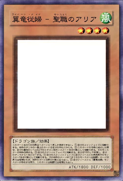 | このカード名の①の効果は1ターンに1度しか使用できない。①:自分のメインフェイズに発動できる。相手のデッキの一番上のカードを自分の手札に加える。②:このカードの召喚に成功した場合、自分の墓地のレベル4以下のドラゴン族モンスター1体を対象にして発動できる。そのモンスターを特殊召喚する。③:自分のスタンバイフェイズに発動する。自分を1000LP回復し、自分のデッキから1枚ドローする。④:自分のスタンバイフェイズに自分フィールドの表側表示のモンスター1体を対象にして発動できる。次の相手のターン終了までそのモンスターは戦闘・カード効果では破壊されず、相手のカード効果の対象にならない。⑤:自分フィールドに「翼竜従婦」モンスターが存在する限り、このカードは戦闘では破壊されない。 | |||