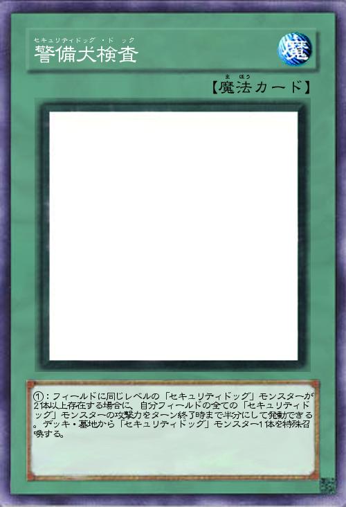 | ①:フィールドに同じレベルの「セキュリティドッグ」モンスターが2体以上存在する場合に、自分フィールドの全ての「セキュリティドッグ」モンスターの攻撃力をターン終了時まで半分にして発動できる。デッキ・墓地から「セキュリティドッグ」モンスター1体を特殊召喚する。 | |||
