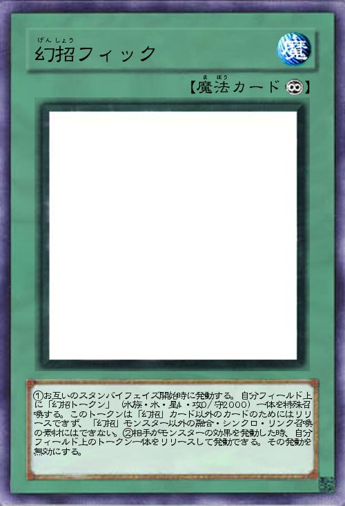 | ①お互いのスタンバイフェイズ開始時に発動する。自分フィールド上に「幻招トークン」(水族・水・星4・攻0/守2000)一体を特殊召喚する。このトークンは「幻招」カード以外のカードのためにはリリースできず、「幻招」モンスター以外の融合・シンクロ・リンク召喚の素材にはできない。②相手がモンスターの効果を発動した時、自分フィールド上のトークン一体をリリースして発動できる。その発動を無効にする。 | |||