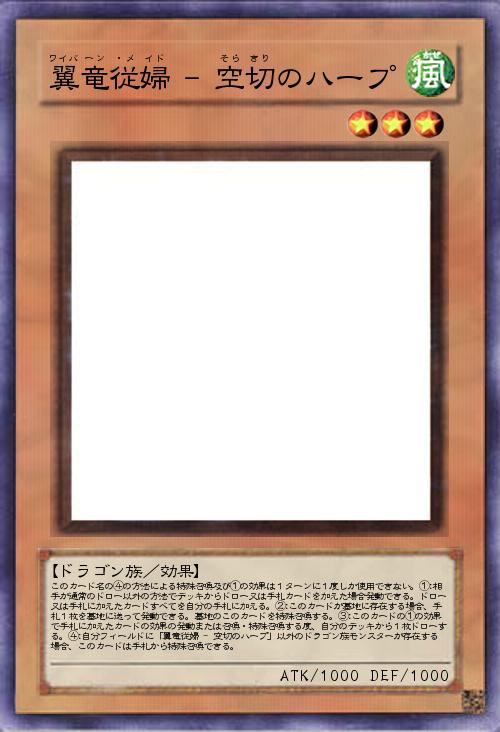 | このカード名の④の方法による特殊召喚及び①の効果は1ターンに1度しか使用できない。①:相手が通常のドロー以外の方法でデッキからドロー又は手札カードを加えた場合発動できる。ドロー又は手札に加えたカードすべてを自分の手札に加える。②:このカードが墓地に存在する場合、手札1枚を墓地に送って発動できる。墓地のこのカードを特殊召喚する。③:このカードの①の効果で手札に加えたカードの効果の発動または召喚・特殊召喚する度、自分のデッキから1枚ドローする。④:自分フィールドに「翼竜従婦 - 空切のハープ」以外のドラゴン族モンスターが存在する場合、このカードは手札から特殊召喚できる。 | |||
