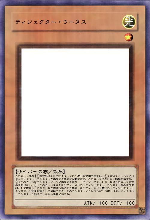 | このカード名の①③の効果はそれぞれ1ターンに1度しか使用できない。①:自分フィールドに「ディジェクター」モンスターが存在する場合に発動できる。このカードを手札から特殊召喚する。②:このカードはモンスターゾーンに存在する限り、「ディジェクター」カード以外のカードの効果を受けない。③:このカードを含む自分フィールドの「ディジェクター」モンスターのみをS素材として使用し、このカードが墓地へ送られた場合、自分フィールド・墓地の「ディジェクター」モンスター1体を対象として発動できる。そのモンスターよりレベルが1つ高い「ディジェクター」モンスター1体をデッキから手札に加える。 | |||