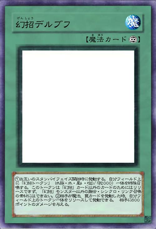 | ①お互いのスタンバイフェイズ開始時に発動する。自分フィールド上に「幻招トークン」(水族・水・星4・攻0/守2000)一体を特殊召喚する。このトークンは「幻招」カード以外のカードのためにはリリースできず、「幻招」モンスター以外の融合・シンクロ・リンク召喚の素材にはできない。②相手が魔法、罠カードを発動した時、自分フィールド上のトークン一体をリリースして発動できる。 相手に600ポイントのダメージを与える。 | |||