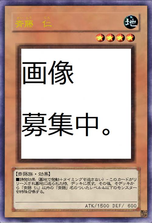 | ■誘発効果(墓地で発動+タイミングを逃さない)-このカードがリリースされ墓地に送られた時、デッキに戻す。その後、そデッキから「斉藤 仁」以外の「斉藤」名のついたレベル4以下のモンスターを特殊召喚する。 | |||