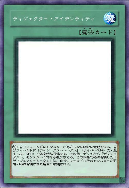 | ①:自分フィールドにモンスターが存在しない場合に発動できる。自分フィールドに「ディジェクタートークン」(サイバース族・光・星1・攻/守0)1体を特殊召喚する。その後、デッキから「ディジェクター」モンスター1体を手札に加える。この効果で特殊召喚した「ディジェクタートークン」は、自分フィールドに他のモンスターが召喚・特殊召喚された場合に破壊される。 | |||
