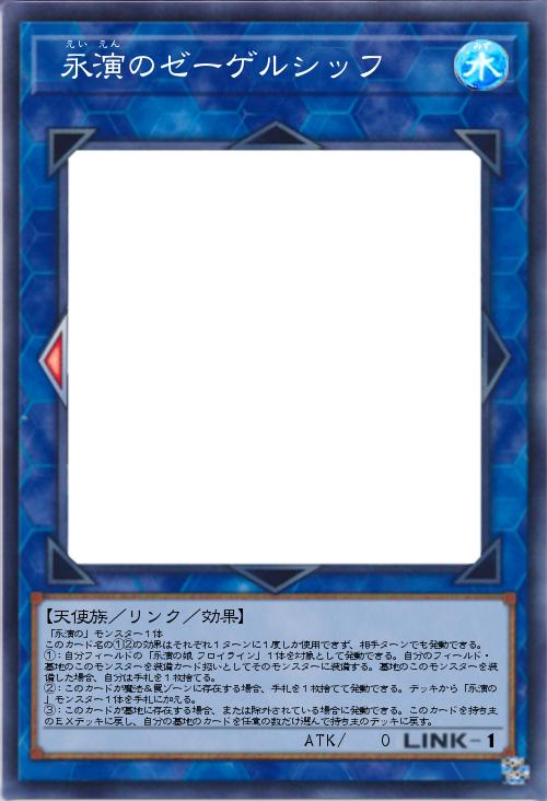 | 「永演の」モンスター1体 このカード名の①②の効果はそれぞれ1ターンに1度しか使用できず、相手ターンでも発動できる。 ①:自分フィールドの「永演の娘 フロイライン」1体を対象として発動できる。自分のフィールド・墓地のこのモンスターを装備カード扱いとしてそのモンスターに装備する。墓地のこのモンスターを装備した場合、自分は手札を1枚捨てる。 ②:このカードが魔法&罠ゾーンに存在する場合、手札を1枚捨てて発動できる。デッキから「永演の」モンスター1体を手札に加える。 ③:このカードが墓地に存在する場合、または除外されている場合に発動できる。このカードを持ち主のEXデッキに戻し、自分の墓地のカードを任意の数だけ選んで持ち主のデッキに戻す。 | |||