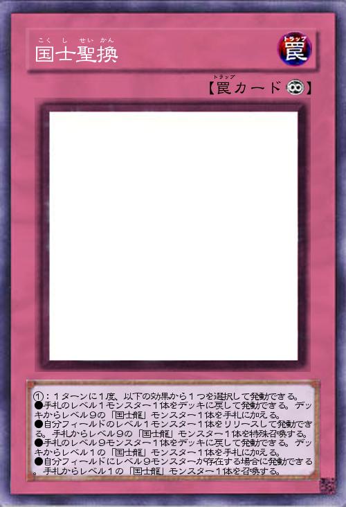 | ①:1ターンに1度、以下の効果から1つを選択して発動できる。 ●手札のレベル1モンスター1体をデッキに戻して発動できる。デッキからレベル9の「国士龍」モンスター1体を手札に加える。 ●自分フィールドのレベル1モンスター1体をリリースして発動できる。手札からレベル9の「国士龍」モンスター1体を特殊召喚する。 ●手札のレベル9モンスター1体をデッキに戻して発動できる。デッキからレベル1の「国士龍」モンスター1体を手札に加える。 ●自分フィールドにレベル9モンスターが存在する場合に発動できる。手札からレベル1の「国士龍」モンスター1体を召喚する。 | |||