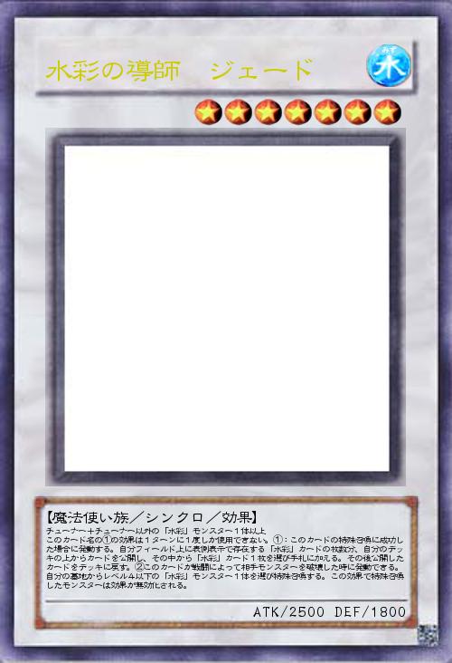 | チューナー+チューナー以外の「水彩」モンスター1体以上 このカード名の①の効果は1ターンに1度しか使用できない。①:このカードの特殊召喚に成功した場合に発動する。自分フィールド上に表側表示で存在する「水彩」カードの枚数分、自分のデッキの上からカードを公開し、その中から「水彩」カード1枚を選び手札に加える。その後公開したカードをデッキに戻す。②このカードが戦闘によって相手モンスターを破壊した時に発動できる。自分の墓地からレベル4以下の「水彩」モンスター1体を選び特殊召喚する。この効果で特殊召喚したモンスターは効果が無効化される。 | |||
