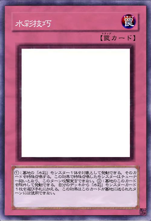 | ①:墓地の「水彩」モンスター1体を対象として発動できる。そのカードを特殊召喚する。この効果で特殊召喚したモンスターはチューナー扱いとなり、このターン攻撃宣言できない。②:墓地のこのカードを除外して発動できる。自分のデッキから「水彩」モンスターカード1枚を選び手札に加える。この効果はこのカードが墓地に送られたターンには使用できない。 | |||