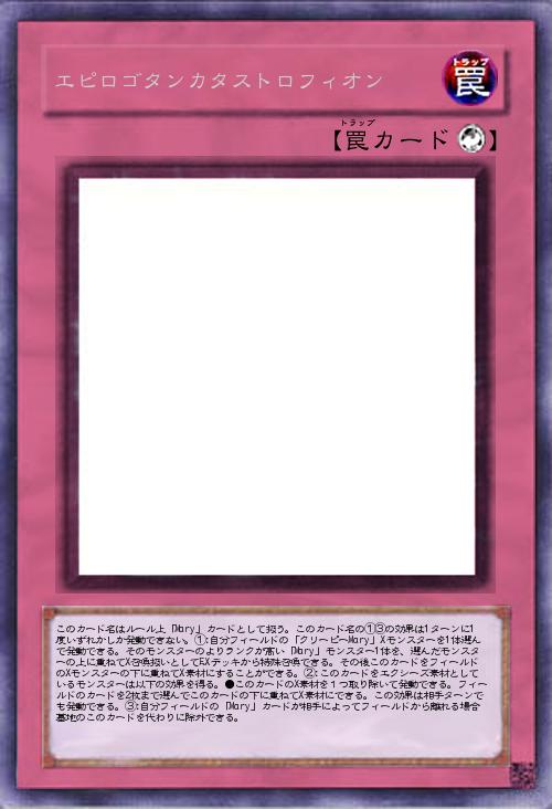 | このカード名はルール上「Mary」カードとして扱う。このカード名の①③の効果は1ターンに1度いずれかしか発動できない。①:自分フィールドの「クリーピーMary」Xモンスターを1体選んで発動できる。そのモンスターのよりランクが高い「Mary」モンスター1体を、選んだモンスターの上に重ねてX召喚扱いとしてEXデッキから特殊召喚できる。その後このカードをフィールドのXモンスターの下に重ねてX素材にすることができる。②:このカードをエクシーズ素材としているモンスターは以下の効果を得る。●このカードのX素材を1つ取り除いて発動できる。フィールドのカードを2枚まで選んでこのカードの下に重ねてX素材にできる。この効果は相手ターンでも発動できる。③:自分フィールドの「Mary」カードが相手によってフィールドから離れる場合墓地のこのカードを代わりに除外できる。 | |||