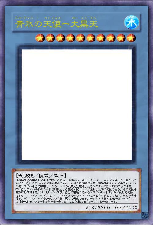 | 「機械天使の儀式」により降臨。このカード名はルール上「サイバー・エンジェル」カードとしても扱う。①:このカードが儀式召喚に成功した場合に発動できる。特殊召喚された相手フィールドのモンスターを全て破壊し、このカードの攻撃力は破壊したモンスターの数×1000アップする。②:自分フィールドのカードを対象とする魔法・罠カードが発動した時に発動できる。その発動を無効にし破壊する。③:1ターンに1度、自分の墓地の儀式モンスター1体をデッキに戻して発動できる。エンドフェイズまで、このカードはそのモンスターと同名カードとして扱い、同じ効果を得る。④:このカードを持ち主の手札に戻して発動できる。デッキ・手札・墓地からレベル7以下の「青氷」モンスター1体を特殊召喚する。この効果は相手ターンでも発動できる。 | |||