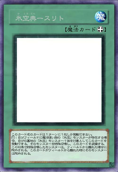 | このカード名のカードは1ターンに1枚しか発動できない。 ①:自分フィールドに魔法使い族の「氷空」モンスターが存在する場合、自分の墓地の「氷空」モンスター1体を対象としてこのカードを発動できる。そのモンスターを特殊召喚し、このカードを装備する。この効果で特殊召喚したモンスターは、フィールドから離れた場合に除外される。このカードがフィールドから離れた時にそのモンスターは除外される。 | |||
