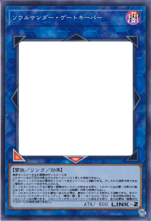 | 通常モンスターを含む闇属性モンスター2体 このカード名の①③の効果はそれぞれ1ターンに1度しか使用できない。 ①:自分フィールドの他の雷族モンスター1体をリリースして発動できる。デッキから通常召喚できない雷族モンスター1体を手札に加える。 ②:このカードのリンク先に雷族・闇属性モンスターが存在する限り、このカードは攻撃・効果の対象にならず、このカードのリンク先のモンスターは戦闘・効果で破壊されない。 ③:このカードがリリースされ墓地へ送られた場合、墓地のこのカードを除外して発動できる。自分フィールドに「ソウルサンダートークン」(雷族・闇・星1・攻1000/守0)1体を特殊召喚する。このトークンは攻撃できず、このトークンがモンスターゾーンに存在する限り、自分は雷族・闇属性モンスターしか特殊召喚できない。 | |||