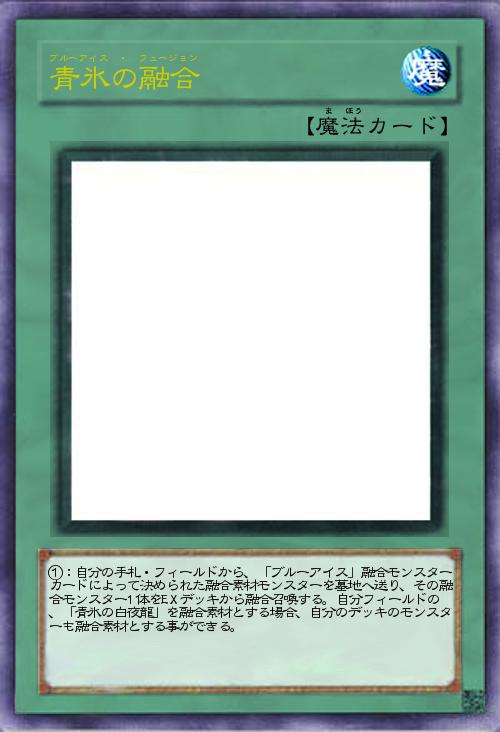 | ①:自分の手札・フィールドから、「ブルーアイス」融合モンスターカードによって決められた融合素材モンスターを墓地へ送り、その融合モンスター1体をEXデッキから融合召喚する。自分フィールドの、「青氷の白夜龍」を融合素材とする場合、自分のデッキのモンスターも融合素材とする事ができる。 | |||