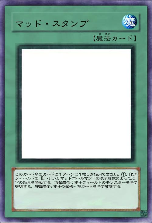 | このカード名のカードは1ターンに1枚しか使用できない。①:自分フィールドの「E・HEROマッドボールマン」の表示形式によって以下の効果を発動する。攻撃表示:相手フィールドのモンスターを全て破壊する。守備表示:相手の魔法・罠カードを全て破壊する。 | |||