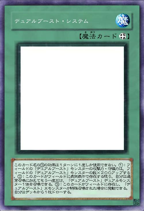 | このカード名の③の効果は1ターンに1度しか使用できない。①:フィールドの「デュアルブースト」モンスターの攻撃力・守備力は、フィールドの「デュアルブースト」モンスターの数×200アップする。②:このカードがフィールドに表側表示で存在する限り、自分は通常召喚に加えてもう一度だけ、「デュアルブースト」デュアルモンスター1体を召喚できる。③:このカードがフィールドに存在し、「デュアルブースト」Xモンスターが特殊召喚された場合に発動できる。自分はデッキから1枚ドローする。 | |||