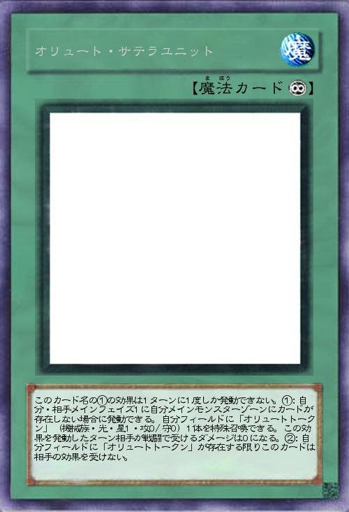 | このカード名の①の効果は1ターンに1度しか発動できない。①:自分・相手メインフェイズ1に自分メインモンスターゾーンにカードが存在しない場合に発動できる。自分フィールドに「オリュートトークン」(機械族・光・星1・攻0/守0)1体を特殊召喚できる。この効果を発動したターン相手が戦闘で受けるダメージは0になる。②:自分フィールドに「オリュートトークン」が存在する限りこのカードは相手の効果を受けない。 | |||