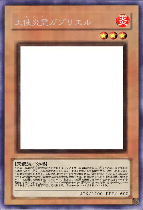 | このカード名の①②の効果はそれぞれ1ターンに1度しか発動できない。①:このカードを手札から墓地へ送り、フィールドの表側表示モンスター1体を対象として発動できる。選択したモンスターの表示形式を変更する。この効果は相手ターンでも発動できる。②:自分メインフェイズにこのカードが攻撃表示から守備表示になった場合に発動できる。自分のデッキから「天使炎霊」魔法カード1枚を選んで発動する。このターン、自分はこの効果で発動したカード及びその同名カードを発動する事ができない。③:このカードが守備表示から攻撃表示に変わった時、自分の手札のカード1枚をデッキの1番下に戻して発動する。デッキからカードを1枚ドローする。 | |||