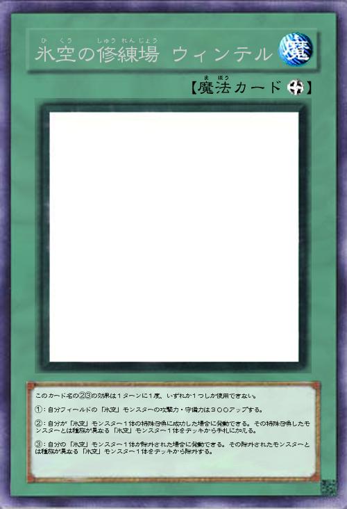 | このカード名の②③の効果は1ターンに1度、いずれか1つしか使用できない。 ①:自分フィールドの「氷空」モンスターの攻撃力・守備力は300アップする。 ②:自分が「氷空」モンスター1体の特殊召喚に成功した場合に発動できる。その特殊召喚したモンスターとは種族が異なる「氷空」モンスター1体をデッキから手札に加える。 ③:自分の「氷空」モンスター1体が除外された場合に発動できる。その除外されたモンスターとは種族が異なる「氷空」モンスター1体をデッキから除外する。 | |||