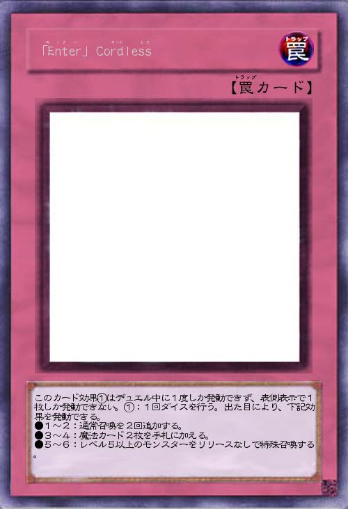 | このカード効果①はデュエル中に1度しか発動できず、表側表示で1枚しか発動できない。①:1回ダイスを行う。出た目により、下記効果を発動できる。 ●1~2:通常召喚を2回追加する。 ●3~4:魔法カード2枚を手札に加える。 ●5~6:レベル5以上のモンスターをリリースなしで特殊召喚する。 | |||