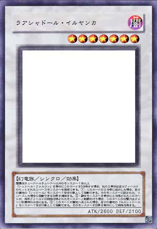 カード名は、シャドールの名前が聖書や中東の神話などから取られる傾向があるようなので、邪竜星から転じて「悪」を意味するラーアから取ってラアシャドールにしました。どうもユダヤ教の用語らしいのですが、詳しい事はよく分かりません(笑)