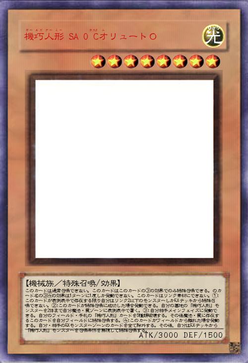 | このカードは通常召喚できない。このカードはこのカードの③の効果でのみ特殊召喚できる。のカード名の③④の効果は1ターンに1度しか発動できない。このカードはリンク素材にできない。①:このカードが表側表示で存在する限り自分はリンク2以下のモンスターしかEXデッキから特殊召喚できない。②:このカードが特殊召喚に成功した場合発動できる。自分の墓地の「機巧人形」モンスターを2体まで自分魔法・罠ゾーンに表側表示で置く。③:自分相手メインフェイズに発動できる。自分のフィールド・手札の「機巧人形」カードを5種類破壊する。その後魔法・罠に存在するこのカードを自分フィールドに特殊召喚する。④:このカードがフィールドから離れた場合発動する。自分・相手のEXモンスターゾーンのカードを全て除外する。その後、自分はEXデッキから「機巧人形」モンスターを召喚条件を無視して特殊召喚する。 | |||