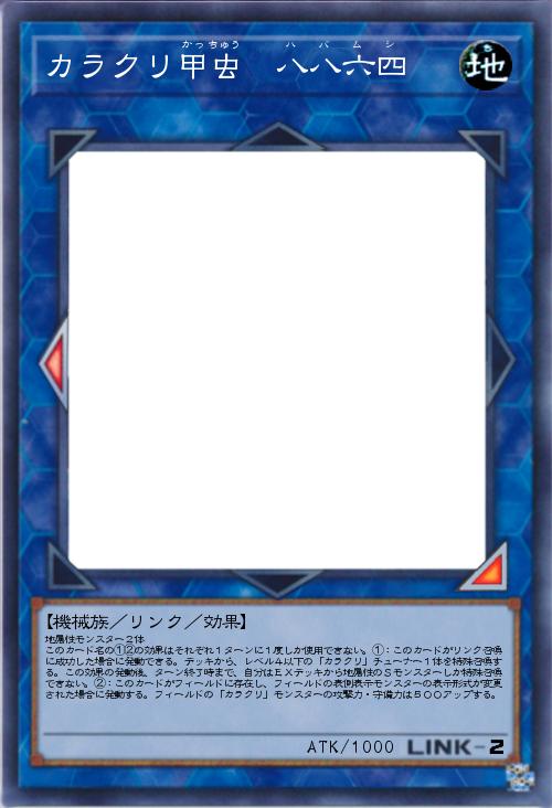 | 地属性モンスター2体 このカード名の①②の効果はそれぞれ1ターンに1度しか使用できない。①:このカードがリンク召喚に成功した場合に発動できる。デッキから、レベル4以下の「カラクリ」チューナー1体を特殊召喚する。この効果の発動後、ターン終了時まで、自分はEXデッキから地属性のSモンスターしか特殊召喚できない。②:このカードがフィールドに存在し、フィールドの表側表示モンスターの表示形式が変更された場合に発動する。フィールドの「カラクリ」モンスターの攻撃力・守備力は500アップする。 | |||