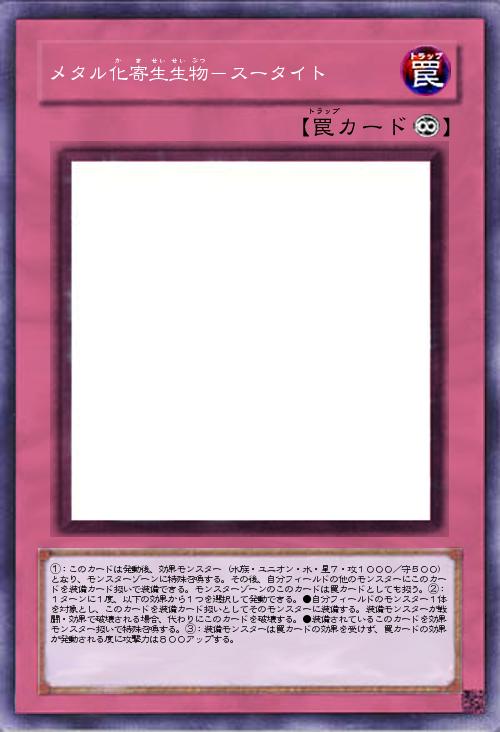 | ①:このカードは発動後、効果モンスター(水族・ユニオン・水・星7・攻1000/守500)となり、モンスターゾーンに特殊召喚する。その後、自分フィールドの他のモンスターにこのカードを装備カード扱いで装備できる。モンスターゾーンのこのカードは罠カードとしても扱う。②:1ターンに1度、以下の効果から1つを選択して発動できる。●自分フィールドのモンスター1体を対象とし、このカードを装備カード扱いとしてそのモンスターに装備する。装備モンスターが戦闘・効果で破壊される場合、代わりにこのカードを破壊する。●装備されているこのカードを効果モンスター扱いで特殊召喚する。③:装備モンスターは罠カードの効果を受けず、罠カードの効果が発動される度に攻撃力は800アップする。 | |||