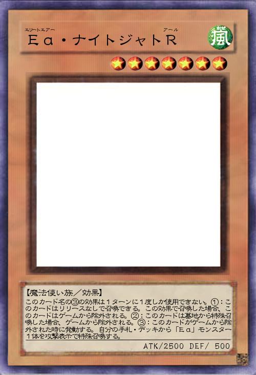 | このカード名の③の効果は1ターンに1度しか使用できない。①:このカードはリリースなしで召喚できる。この効果で召喚した場合、このカードはゲームから除外される。②:このカードは墓地から特殊召喚した場合、ゲームから除外される。③:このカードがゲームから除外された時に発動する。自分の手札・デッキから「Ea」モンスター1体を攻撃表示で特殊召喚する。 | |||