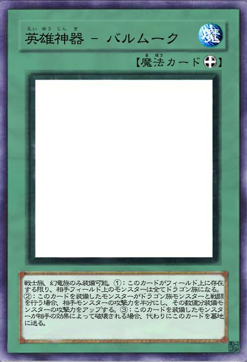 | 戦士族、幻竜族のみ装備可能。①:このカードがフィールド上に存在する限り、相手フィールド上のモンスターは全てドラゴン族になる。②:このカードを装備したモンスターがドラゴン族モンスターと戦闘をするとき、相手モンスターの攻撃力を半分にし、半分にした数値分攻撃力をアップする。③:このカードを装備したモンスターが破壊される場合、代わりにこのカードを墓地に送る。 | |||