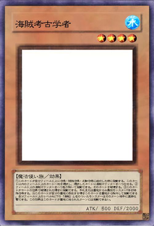 | ①このカードが自分フィールド上に召喚・特殊召喚・反転召喚に成功した時に発動する。このカード以外のフィールド上のカード一枚を選択し、選択したカードに海賊カウンターを一つのせる。②フィールド上の海賊カウンターを一つ取り除いて発動できる。そのカードを破壊する。③このカードがカードの効果で破壊された場合に発動できる。手札または墓地から水属性モンスター1体を特殊召喚する。④このカードが自分の墓地に存在する場合このカードを墓地から除外して発動できる。自分フィールド上のレベル4以下の「海賊」と名のついたモンスターはそのターン相手に直接攻撃できる。この効果はこのカードが墓地に送られたターンには発動できない。 | |||