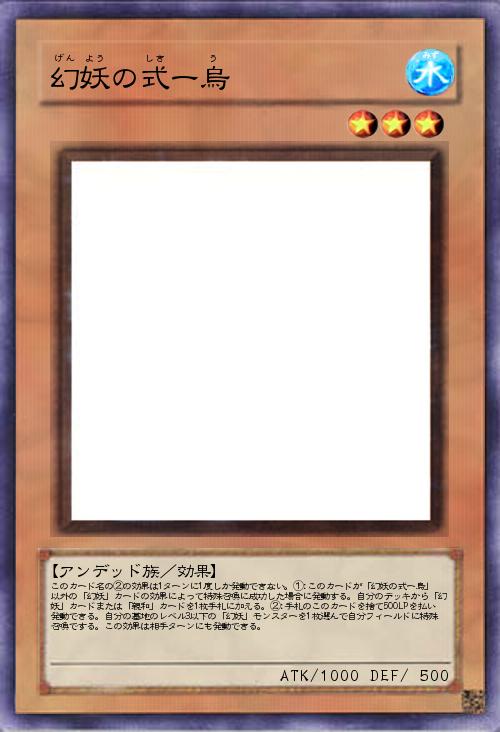 | このカード名の②の効果は1ターンに1度しか発動できない。①:このカードが「幻妖の式ー烏」以外の「幻妖」カードの効果によって特殊召喚に成功した場合に発動する。自分のデッキから「幻妖」カードまたは「親和」カードを1枚手札に加える。②:手札のこのカードを捨て500LPを払い発動できる。自分の墓地のレベル3以下の「幻妖」モンスターを1枚選んで自分フィールドに特殊召喚でする。この効果は相手ターンにも発動できる。 | |||