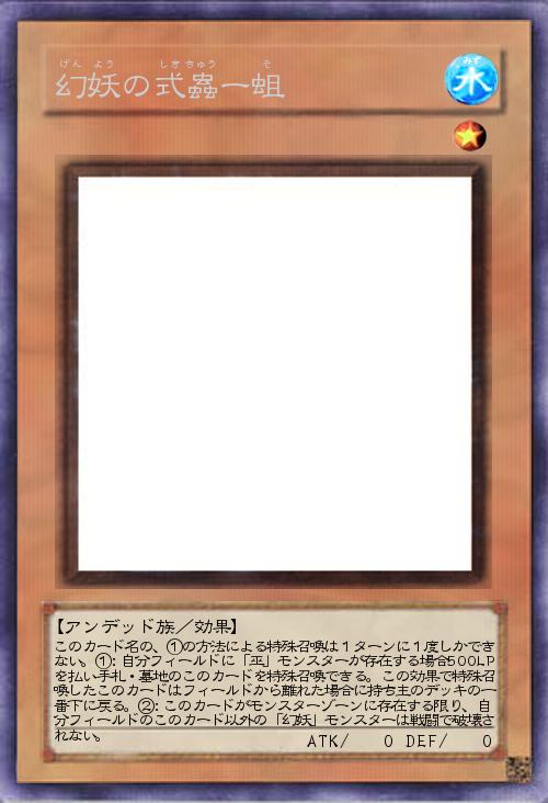 ヒルと言うよりかは蛆(うじ)ですね。使った理由はあまり知られていない益虫であることとストーリー的にこちらの方がいいと判断しました。効果としてはライフコストが緩和された分縛りが増えたデストルドーのように思っていただければいいとおもいます。2体並べてロックは遊戯王あるあるなのでこのカードには関しては「幻妖の式蟲ー蛆」以外のとは描きませんでした。」(2019-12-28 11:01)