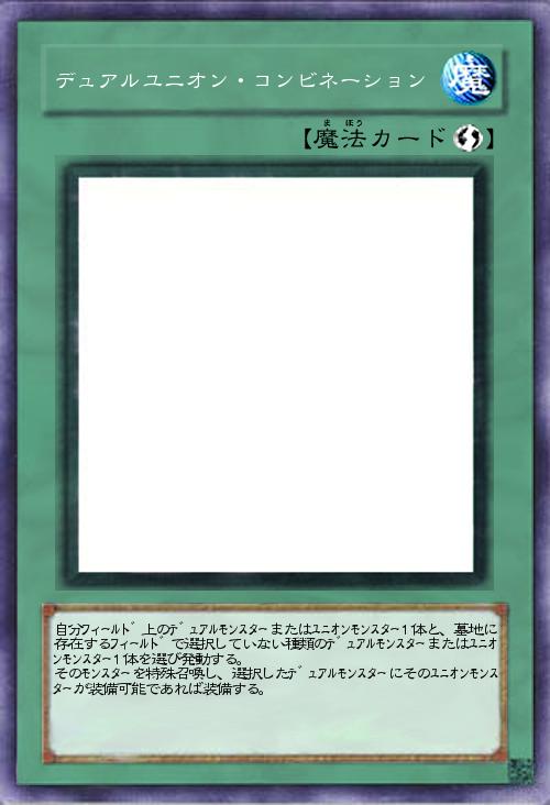 | 自分フィールド上のデュアルモンスターまたはユニオンモンスター1体と、墓地に存在するフィールドで選択していない種類のデュアルモンスターまたはユニオンモンスター1体を選び発動する。 そのモンスターを特殊召喚し、選択したデュアルモンスターにそのユニオンモンスターが装備可能であれば装備する。 | |||