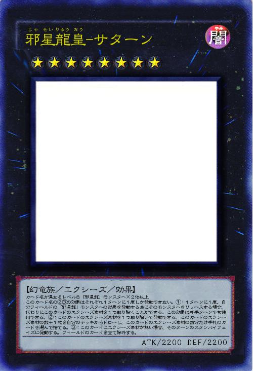| カード名が異なるレベル8「邪星龍」モンスター×2体以上 このカード名の②③の効果はそれぞれ1ターンに1度しか発動できない。①:1ターンに1度、自分フィールドの「邪星龍」モンスターの効果を発動する為にそのモンスターをリリースする場合、代わりにこのカードのエクシーズ素材を1つ取り除くことができる。この効果は相手ターンでも使用できる。②:このカードのエクシーズ素材を1つ取り除いて発動できる。このカードのエクシーズ素材の数+1枚を自分のデッキからドローし、このカードのエクシーズ素材の数分だけ手札のカードを選んで捨てる。③:このカードにエクシーズ素材が無い場合、そのターンのスタンバイフェイズに発動する。フィールドのカードを全て除外する。 | |||