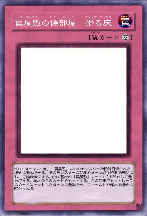 | ①:1ターンに1度、「罠屋敷」以外のモンスターが特殊召喚された場合に発動できる。そのモンスターの効果をターン終了時まで無効にし、守備表示にする。②:墓地の「罠屋敷」カード1枚を除外して発動できる。墓地のこのカードをセットする。この効果でセットしたこのカードはセットしたターンに発動でき、フィールドを離れる場合に除外される。 | |||
