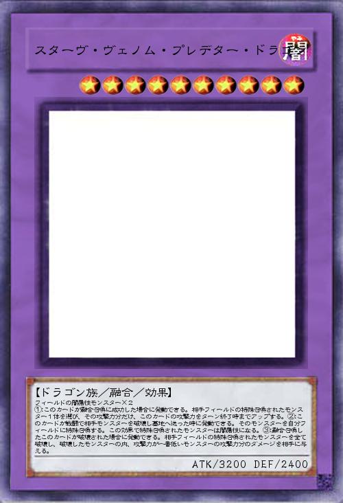 「スターヴ・ヴェノムの派生型。コピー効果がない代わりにゴヨウと同じコントロール奪取があり、奪取されたモンスターは闇属性になります。融合素材もフィールドのモンスターしか使えないのはそのままですが、トークンでも素材に使用可能。破壊された際には攻撃力が一番低い攻撃力のモンスターの攻撃力分のバーンを与えます。」(2020-01-02 20:51)