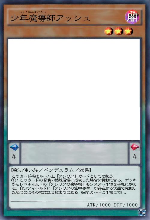 | このカード名はルール上「アシリア」カードとしても扱う。 ①:このカードの召喚・特殊召喚に成功した場合に発動できる。デッキからレベル4以下の「アシリアの魔導機」モンスター1体を手札に加える。自分フィールドに「アシリアの空中要塞」が存在する状態で発動した場合にはその枚数は2枚までになる(同名カードは1枚まで)。 | |||