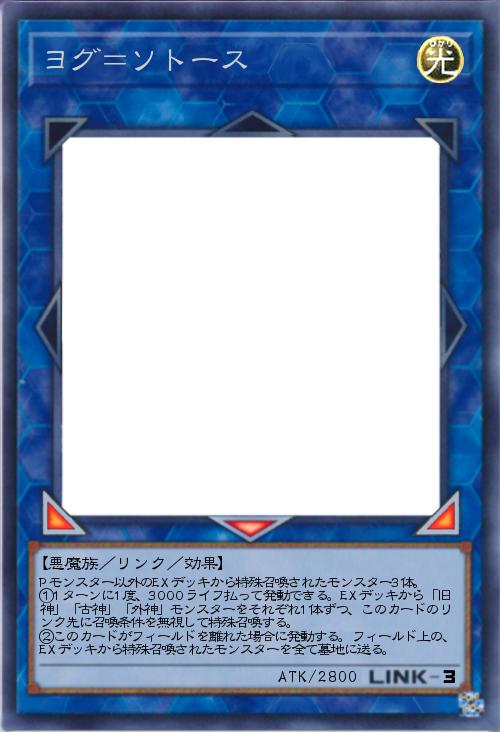 | Pモンスター以外のEXデッキから特殊召喚されたモンスター3体。 ①1ターンに1度、3000ライフ払って発動できる。EXデッキから「旧神」「古神」「外神」モンスターをそれぞれ1体ずつ、このカードのリンク先に召喚条件を無視して特殊召喚する。 ②このカードがフィールドを離れた場合に発動する。フィールド上の、EXデッキから特殊召喚されたモンスターを全て墓地に送る。 | |||