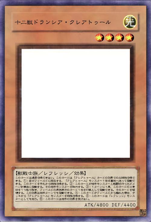 | このカードは通常召喚できない。このカードは「クレアトゥール」カードの効果でのみ特殊召喚できる。①:自分フィールドに存在する、「クレアトゥール」モンスター1体を墓地へ送って発動できる。このカードを手札から特殊召喚する。②:このカードが相手モンスターと戦闘を行ったダメージ計算後に発動する。その相手モンスターを除外する。③:1ターンに1度、このカードのX素材を1つ取り除き、フィールドの表側表示のカード1枚を対象として発動できる。そのカードを破壊する。この効果は相手ターンでも発動できる。④:このカードがフィールドから離れた場合、デッキから「クレアトゥール」モンスターを特殊召喚する。⑤:このカードは「レフレッシ」モンスターとしても扱う。⑥:このカードは相手の効果を受けない。 | |||