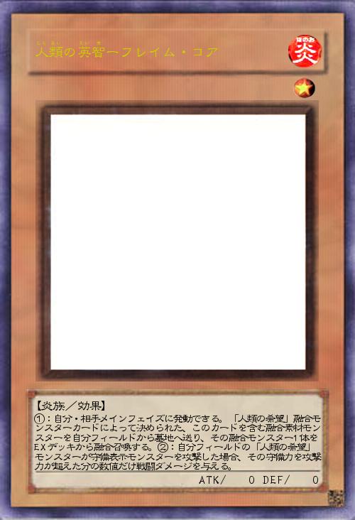 | ①:自分・相手メインフェイズに発動できる。「人類の希望」融合モンスターカードによって決められた、このカードを含む融合素材モンスターを自分フィールドから墓地へ送り、その融合モンスター1体をEXデッキから融合召喚する。②:自分フィールドの「人類の希望」モンスターが守備表示モンスターを攻撃した場合、その守備力を攻撃力が超えた分の数値だけ戦闘ダメージを与える。 | |||