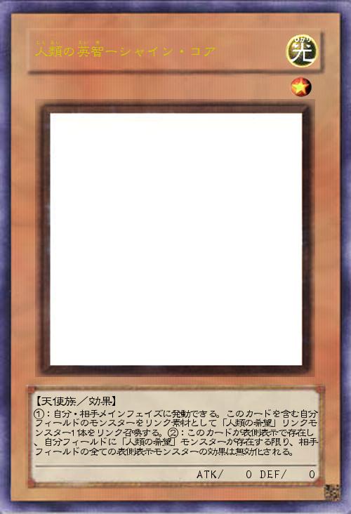 | ①:自分・相手メインフェイズに発動できる。このカードを含む自分フィールドのモンスターをリンク素材として「人類の希望」リンクモンスター1体をリンク召喚する。②:このカードが表側表示で存在し、自分フィールドに「人類の希望」モンスターが存在する限り、相手フィールドの全ての表側表示モンスターの効果は無効化される。 | |||