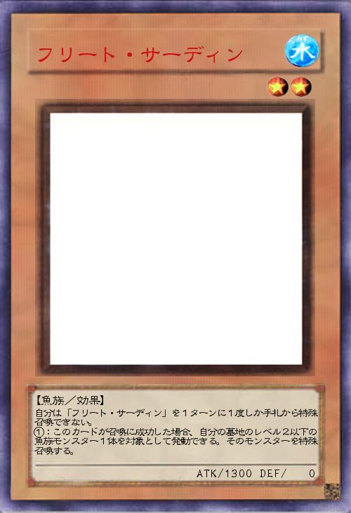 | 自分は「フリート・サーディン」を1ターンに1度しか手札から特殊召喚できない。 ①:このカードが召喚に成功した場合、自分の墓地のレベル2以下の魚族モンスター1体を対象として発動できる。そのモンスターを特殊召喚する。 | |||
