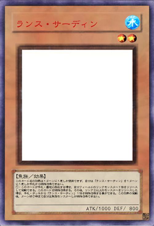 | このカード名の効果は1ターンに1度しか使用できず、自分は「ランス・サーディン」を1ターンに1度しか手札から特殊召喚できない。 ①:このカードが手札・墓地に存在する場合、自分フィールドのリンクモンスター1体をリリースして発動できる。このカードを特殊召喚する。その後、リンク2以上のモンスターをリリースした場合、手札・デッキから「ランス・サーディン」1体を特殊召喚する事ができる。この効果の発動後、ターン終了時まで自分は魚族モンスターしか特殊召喚できない。 | |||