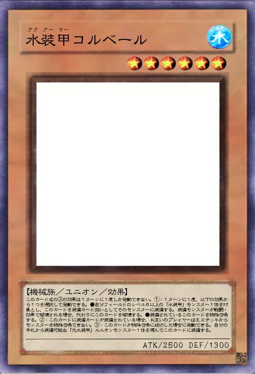| このカード名の③の効果は1ターンに1度しか発動できない。①:1ターンに1度、以下の効果から1つを選択して発動できる。●自分フィールドのレベル5以上の「水装甲」モンスター1体を対象とし、このカードを装備カード扱いとしてそのモンスターに装備する。装備モンスターが戦闘・効果で破壊される場合、代わりにこのカードを破壊する。●装備されているこのカードを特殊召喚する。②:このカードに装備カードが装備されている場合、お互いのプレイヤーはEXデッキからモンスターを特殊召喚できない。③:このカードが特殊召喚に成功した場合に発動できる。自分の手札から装備可能な「光水装甲」ユニオンモンスター1体を選んでこのカードに装備する。 | |||