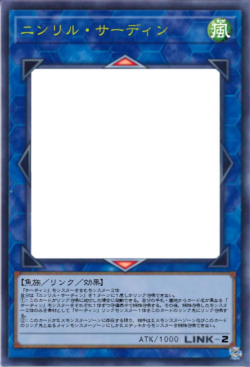 | 「サーディン」モンスターを含むモンスター2体 自分は「ニンリル・サーディン」を1ターンに1度しかリンク召喚できない。 ①:このカードがリンク召喚に成功した場合に発動できる。自分の手札・墓地からカード名が異なる「サーディン」モンスターをそれぞれ1体ずつ守備表示で特殊召喚する。その後、特殊召喚したモンスター2体のみを素材として「サーディン」リンクモンスター1体をこのカードのリンク先にリンク召喚する。 ②:このカードがEXモンスターゾーンに存在する限り、相手はEXモンスターゾーン及びこのカードのリンク先となるメインモンスターゾーンにしかEXデッキからモンスターを特殊召喚できない。 | |||