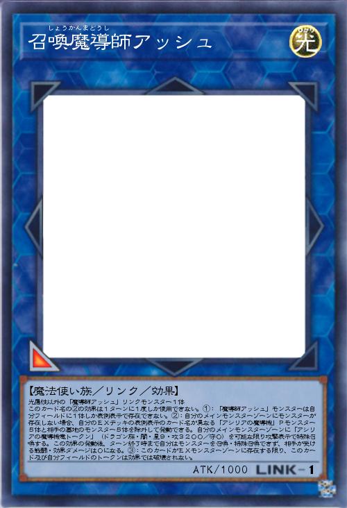 | 光属性以外の「魔導師アッシュ」リンクモンスター1体 このカード名の②の効果は1ターンに1度しか使用できない。①:「魔導師アッシュ」モンスターは自分フィールドに1体しか表側表示で存在できない。②:自分のメインモンスターゾーンにモンスターが存在しない場合、自分のEXデッキの表側表示のカード名が異なる「アシリアの魔導機」Pモンスター5体と相手の墓地のモンスター5体を除外して発動できる。自分のメインモンスターゾーンに「アシリアの魔導機竜トークン」(ドラゴン族・闇・星9・攻3200/守0)を可能な限り攻撃表示で特殊召喚する。この効果の発動後、ターン終了時まで自分はモンスターを召喚・特殊召喚できず、相手が受ける戦闘・効果ダメージは0になる。③:このカードがEXモンスターゾーンに存在する限り、このカード及び自分フィールドのトークンは効果では破壊されない。 | |||