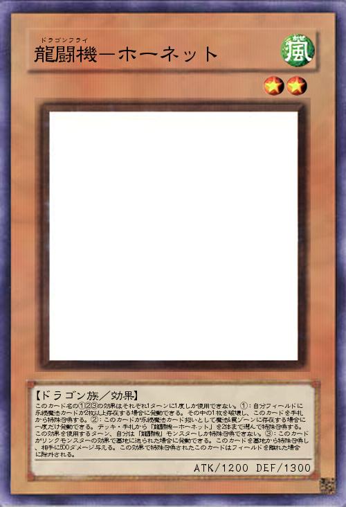 | このカード名の①②③の効果はそれぞれ1ターンに1度しか使用できない。①:自分フィールドに永続魔法カードが2枚以上存在する場合に発動できる。その中の1枚を破壊し、このカードを手札から特殊召喚する。②:このカードが永続魔法カード扱いとして魔法&罠ゾーンに存在する場合に一度だけ発動できる。デッキ・手札から「龍闘機-ホーネット」を2体まで選んで特殊召喚する。この効果を使用するターン、自分は「龍闘機」モンスターしか特殊召喚できない。③:このカードがリンクモンスターの効果で墓地に送られた場合に発動できる。このカードを墓地から特殊召喚し、相手に500ダメージ与える。この効果で特殊召喚されたこのカードはフィールドを離れた場合に除外される。 | |||